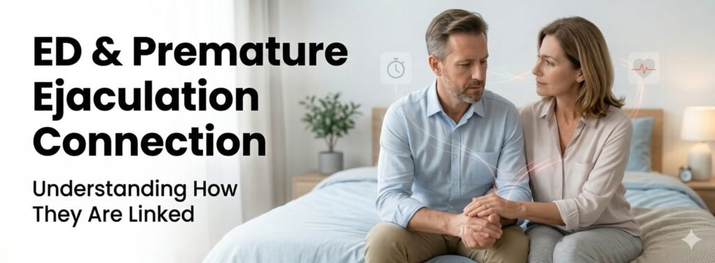 Erectile dysfunction and premature ejaculation are different conditions, but they can sometimes be connected. Men experiencing ED may develop anxiety, which can lead to early ejaculation.